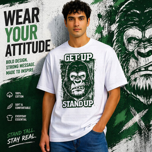 “Get Up Stand Up” Gorilla Graphic Men’s White T-Shirt