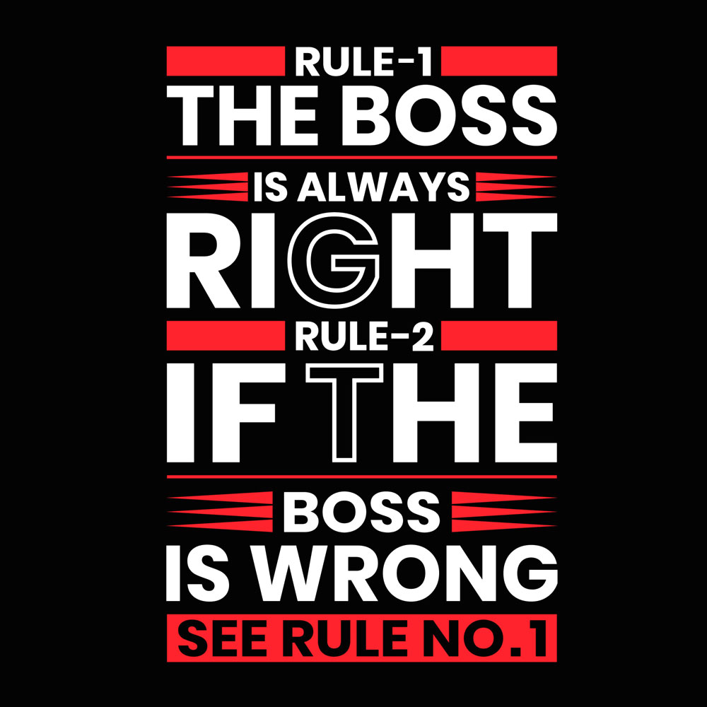 Make a bold statement at work or after hours with this Men’s Black “The Boss Is Always Right” Graphic T-Shirt. Featuring a witty, eye-catching typography design in red and white, this tee perfectly blends humor with confidence.