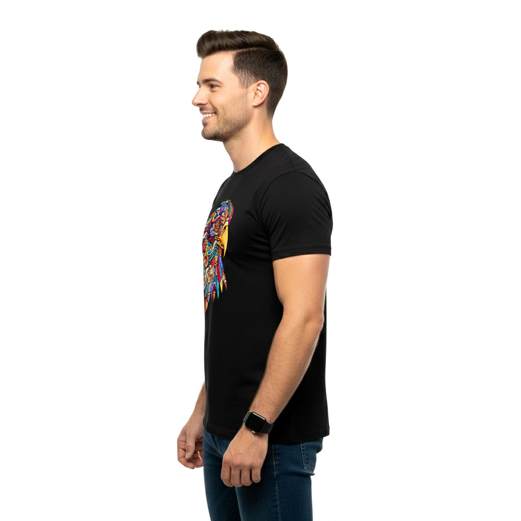 Unleash power, freedom, and bold individuality with this Men’s Colorful Eagle Graphic T-Shirt. Featuring a striking multicolor eagle head illustration on a deep black base, this design symbolizes strength, vision, and leadership—perfect for those who like their style fearless and expressive.