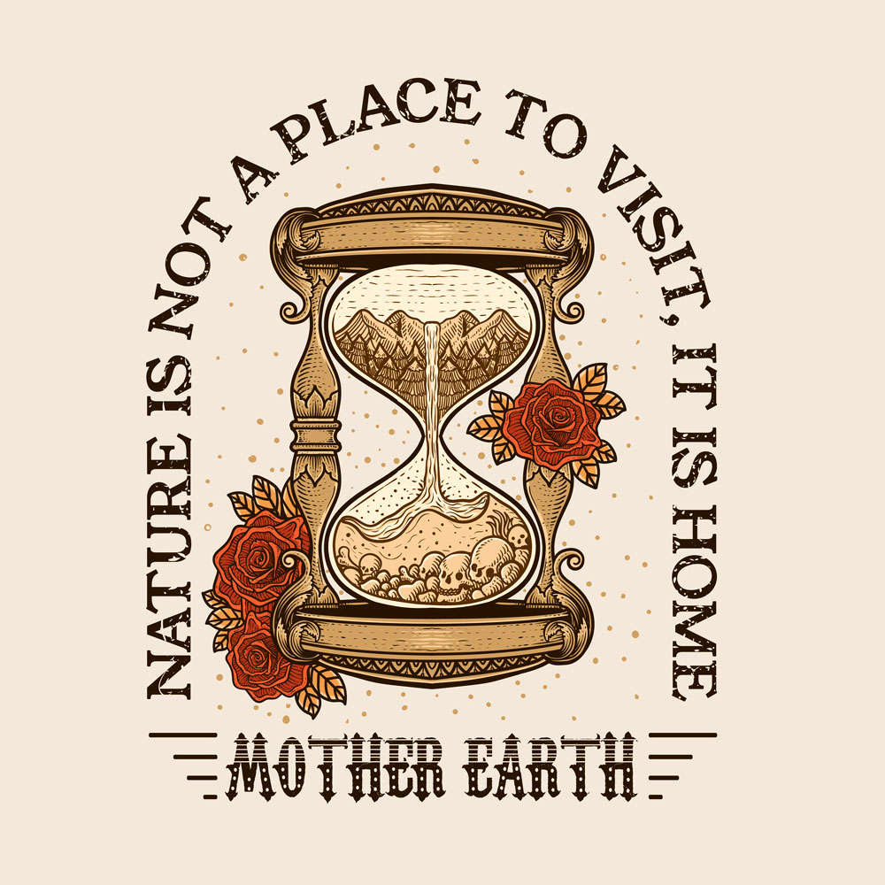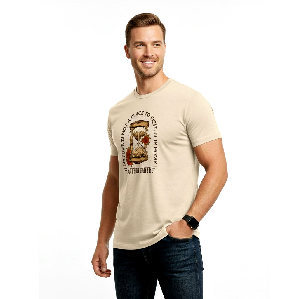 Wear a message that matters with the Mother Earth Is Home Graphic T-Shirt. Featuring a detailed hourglass illustration and the powerful quote “Nature is not a place to visit, it is home”, this tee reflects respect for the planet and a deeper connection with nature.